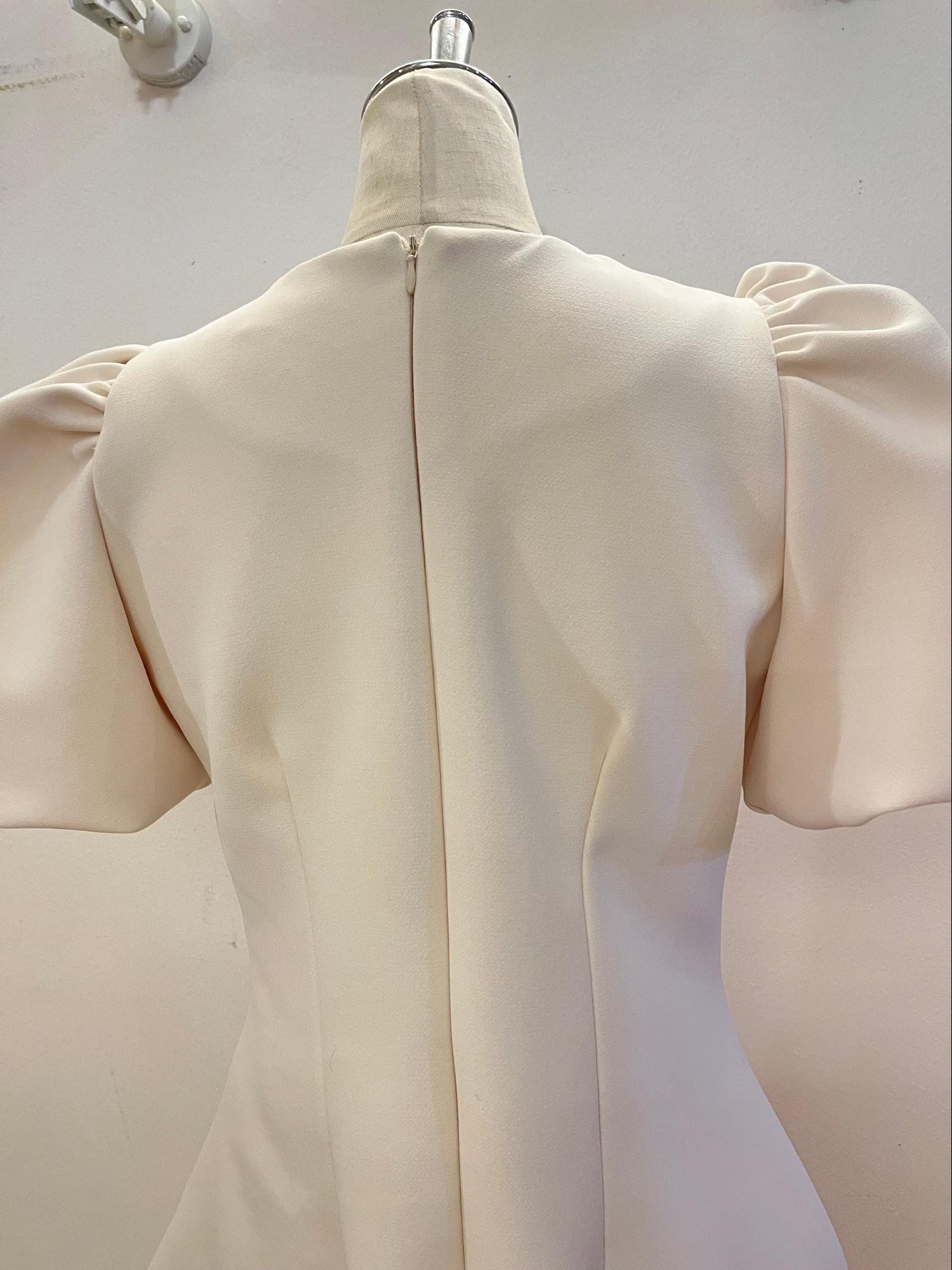 甘くて可愛い半袖パフスリーブワンピース。シンプルなデザインながら、フェミニンで華やかな印象を与えます。Aラインのシルエットで体型カバーもできるので、体型を気にせず着用できます。